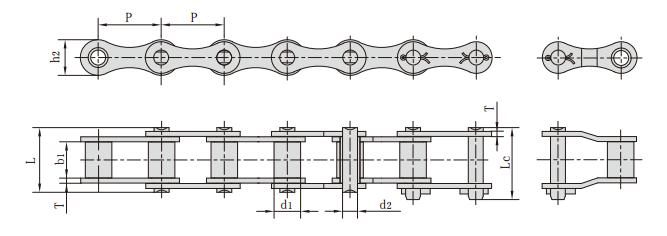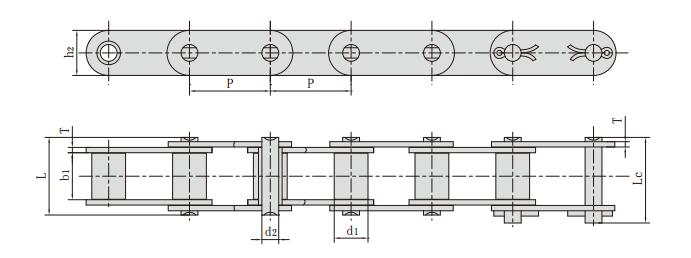 鏈號 節距 滾子直徑 內節內寬 銷軸直徑 銷軸長度 內鏈板高度 鏈板厚度 抗拉強度 平均抗拉強度 每米重量